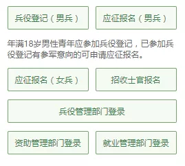 ■ 编者语:有些小伙伴看到这么多的菜单就有些懵了,其实不用紧张,如果你是第一次来的男生,直接从“兵役登记(男兵)”进入页面就可以了;否则就从“应征报名(男兵)”进入页面;如果想报名招收士官,就从“招收士官报名”进入页面,不过,今年的招收士官貌似还没开始 -_-!!