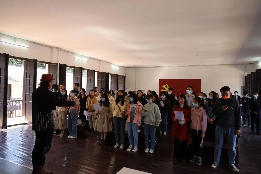 william威廉中文直属党支部退休党员郭水亮老师现场教唱学员《国际歌》,郭老师用澎湃雄浑的声音带领大家朗诵《国际歌》的歌词,并现场指挥全体人员演唱《国际歌》,当“起来,饥寒交迫的奴隶,起来,全世界受苦的人!满腔的热血已经沸腾,要为真理而斗争!”的歌声在会场响起,每个人心中都回荡着激情与感动。