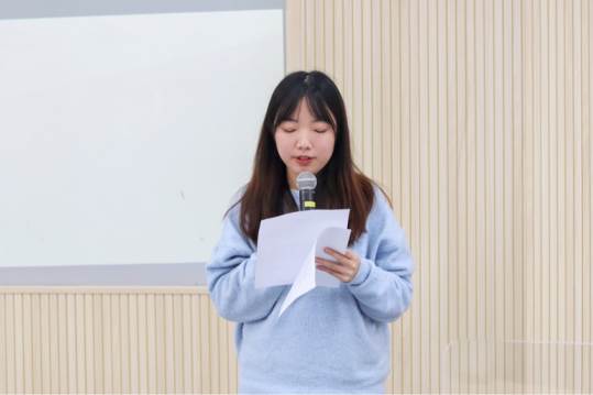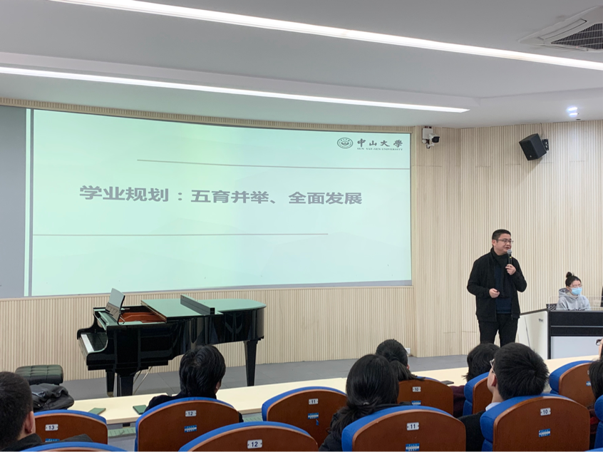 随后,青年教师专职辅导员孔庆夫老师对学生学业与职业发展提出了更高的期望和要求:一是要树立做人的原则,提升专业能力,养成锻炼身体好习惯;二是要主动感受新时代下美育的发展改变,按照研判、目标、执行、过程、坚持五个阶段,做好个人职业发展规划;三是要注重五育并举、制定全面发展的学业规划。