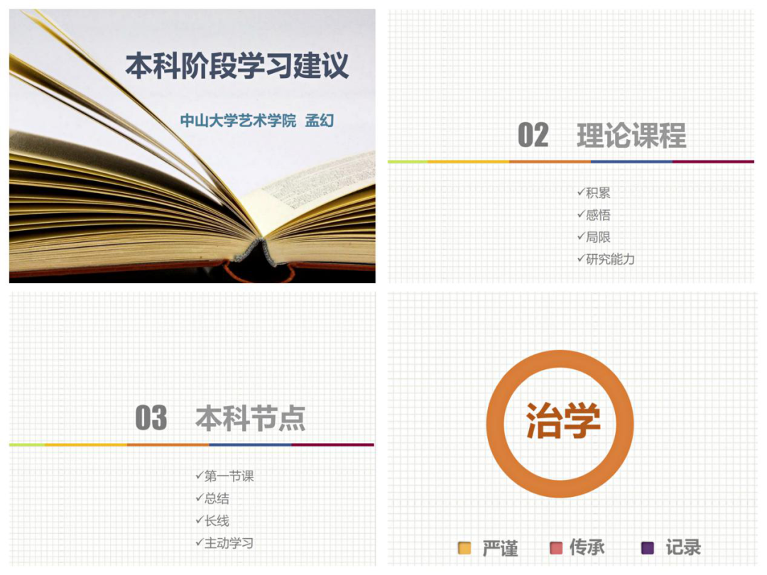 接着,孟幻老师按照本科学习节点,提出了四年的日常要求。一年级:规范基础、奠定审美;二年级:完善技巧、储备理论;三年级:提升维度、协同合作、流畅表演;四年级:拓展曲目、规划作品、研习风格、塑造角色。同时,引导同学们每学年要围绕5-6个专业问题深入思考。如本科一年级的问题是:你需要学习哪些科目?科目内容?你对自己专业的技巧体系了解多少?你的练习是否有流程?你了解哪些本专业名家和音乐会?你是否分析/预测过自己的专业瓶颈?