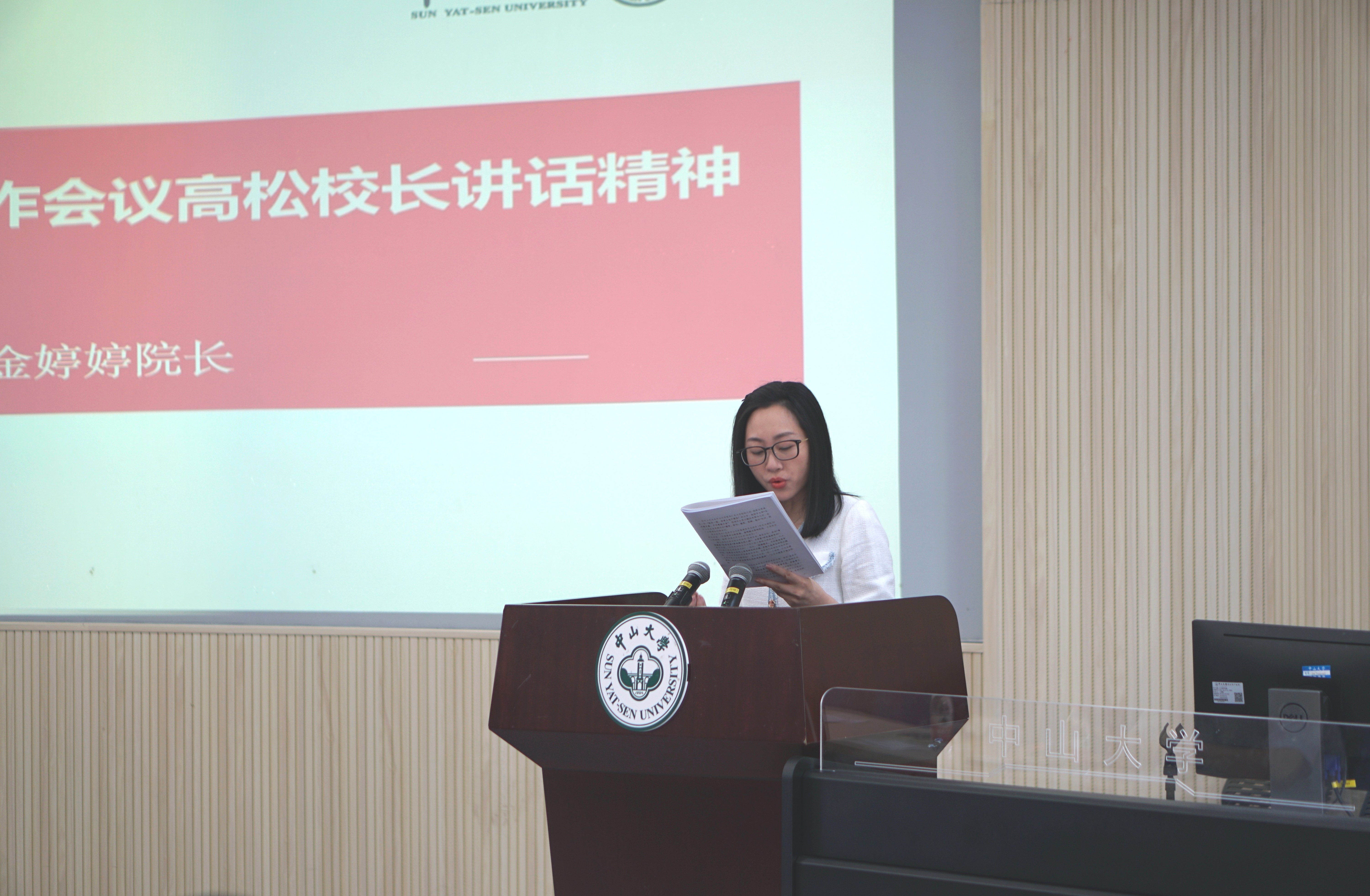会上,金婷婷院长传达了学校2022年春季工作会议高松校长讲话精神,高松校长报告主题为“以高水平人才培养和高素质教师队伍建设为抓手,扎实推进学校高质量内涵式发展”,习近平总书记强调,大学要抓好三项基础性工作,即坚持办学正确政治方向、建设高素质教师队伍、形成高水平人才培养体系。高校长指出,未来中大要继续回归大学的育人根本,把握住机遇,立足湾区,守正创新,稳步扎实推进学校高质量内涵式发展。高校长强调,围绕如何激发学生、教师、院系的主动性和创造性,要做好三方面的工作:一是通识教育与专业教育相融合,是研究型大学本科教育发展之路;二是深化教师人事制度改革,着力打造高素质教师队伍;三是稳步推进学部制改革,健全学术治理体系,激发院系活力,促进学科交叉。高校长强调要以学生成长为中心,提升学生的学习力、思想力和行动力,培养能够引领未来的人。为实现这一目标,高校长阐述了十六字人才培养理念:“加强基础、促进交叉、尊重选择、卓越教学”,核心是坚持以学生成长为中心,坚持通识教育与专业教育相融合。