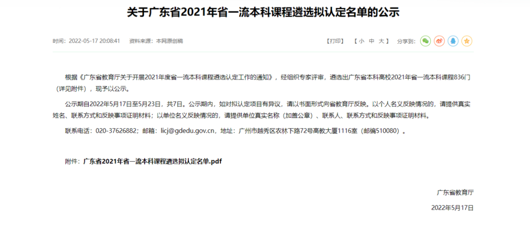 喜讯:我院两门课程入选广东省一流本科课程