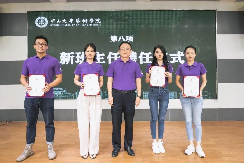 在新班主任聘任仪式上,学院李明章书记逐一为曹芳菱、洪艳惠、陈涌川与杨悦等4位老师颁发了聘书。