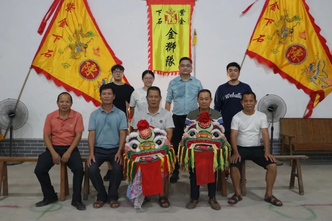 15日,实践团与凤安镇下石村党委进行座谈交流,了解乡村党建情况以及当地舞狮文化的发展渊源。村党委书记陈国胜介绍了该村党委的党建工作情况,并着重介绍了下石村舞狮民俗相传由清光绪年间下石村武进士陈世涛创编,至今已有一百多年的历史,金狮集狮子、麒麟、貔貅三者的形貌,表演将狮舞和武术两者巧妙融合,深受当地群众喜爱。目前,舞狮文化已形成老中少的梯级传承队伍,新一批舞狮队伍有20余名青少年参与,呈现出欣欣向荣的发展势头。学院李明章书记对当地舞狮传承从娃娃抓起的做法表示赞赏,并建议结合国家有关要求,将舞狮表演与中小学生劳育、美育、体育相结合,进一步拓展舞狮文化的辐射面和影响力。