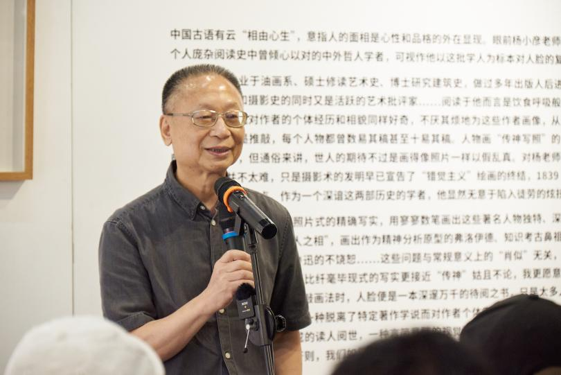 罗筠筠教授则是从体验的角度,指出对于艺术的“深刻”感知,必须要“真实地在场”。她认为,现场观展和手机看图,所得体验不啻云泥之别,扁平的图片不可能还原现场身临其境的震撼。罗教授说,顾恺之说画作要“以形写神”,而杨小彦教授的画则是“以神写形”。因为杨教授的学人肖像画,是基于自身对于这些学人思想的深刻理解,所产出的属于他自己的具象“思想”,顾盼之间,尽是神采。