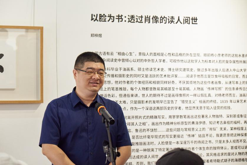 广州美术学院艺术与人文学院院长胡斌教授在致辞中指出,杨小彦教授的这批肖像画有十分特别之处,他不仅是在画一个对象,还在画这个对象后面的书和思想。我们通常知道,有的学者外貌并不显深刻,但他的思想深刻,所以我们怎么才能反映一个人深刻的思想和反映这个深刻的人,杨小彦教授的画给了我们一个很“深刻”的体现。