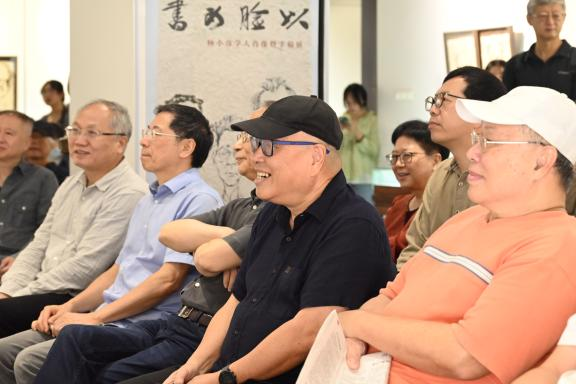 李艳红教授则从一个“观众”的角度指出,展览的意义在于建立艺术家和普通公众的联结。她认为,杨小彦教授的艺术风格是跳脱的,而这种跳脱尤其体现在他将“天马行空”的创作与“无拘无束”的阅读结合起来,让抽象的活动拥有了具象的色彩。李教授认为,杨小彦教授的跳脱既是他自己独特的自由,同时也给了我们“观众”自由。也许在欣赏杨教授画作的过程中,我们未必能解读到画作的独特风格,也不一定能理解到他对哲学的传达,但是只要能有所收获,有不同的体验,便已弥足珍贵。李教授对于锡昌堂的这一文化空间尤其赞赏,她认为,作为高校,应该有更多这样促进思想交流的“第三空间”。