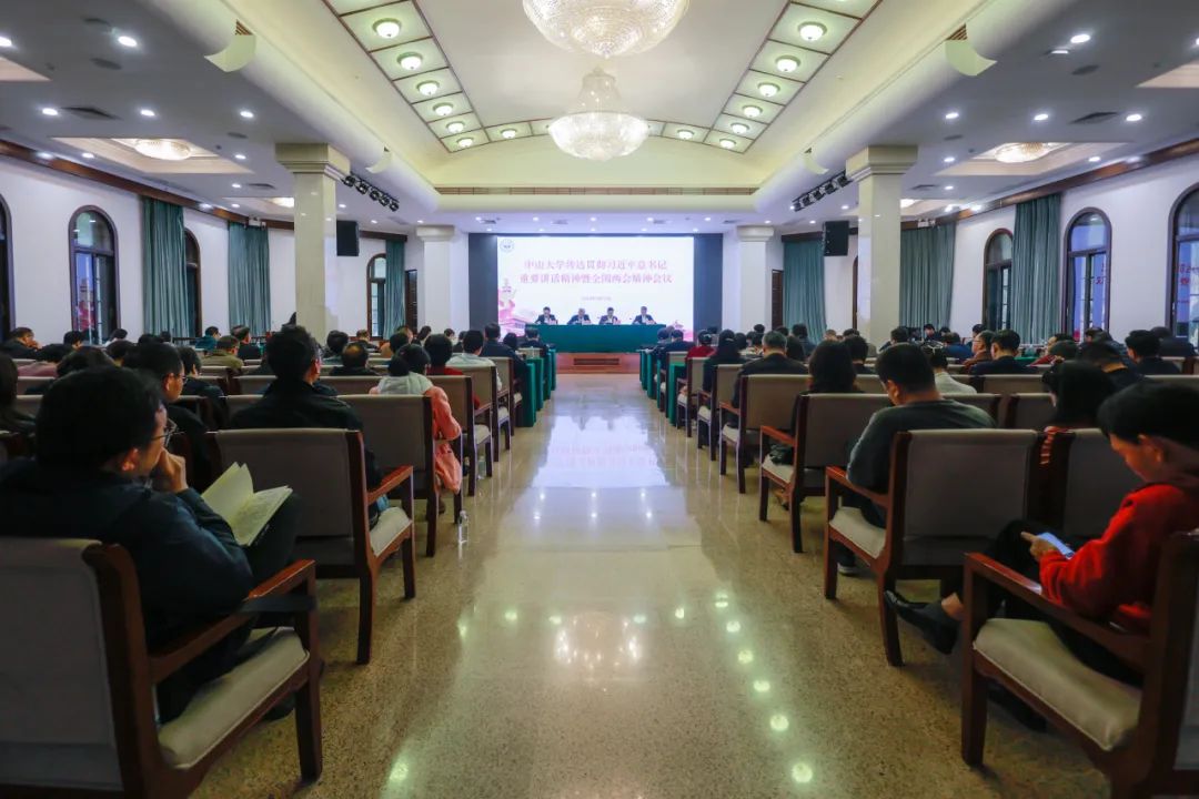 陈春声书记传达了今年两会期间,习近平总书记参加江苏代表团审议、看望参加政协会议的民革科技界环境资源界委员及出席解放军和武警部队代表团全体会议时的重要讲话精神。他指出,要认真学习领会、深入贯彻落实,切实把思想和行动统一到习近平总书记、党中央的决策部署上来,要深刻领会习近平总书记、党中央关于完整、准确、全面贯彻新发展理念,加快构建新发展格局,深入实施科教兴国战略、人才强国战略、创新驱动发展战略,着力提升科技自立自强能力的重要内容,扎实推进学校高质量内涵式发展,奋力开创建设中国特色、世界一流大学新征程。陈春声书记还传达了广东省委书记黄坤明在全省干部大会上的重要讲话精神。