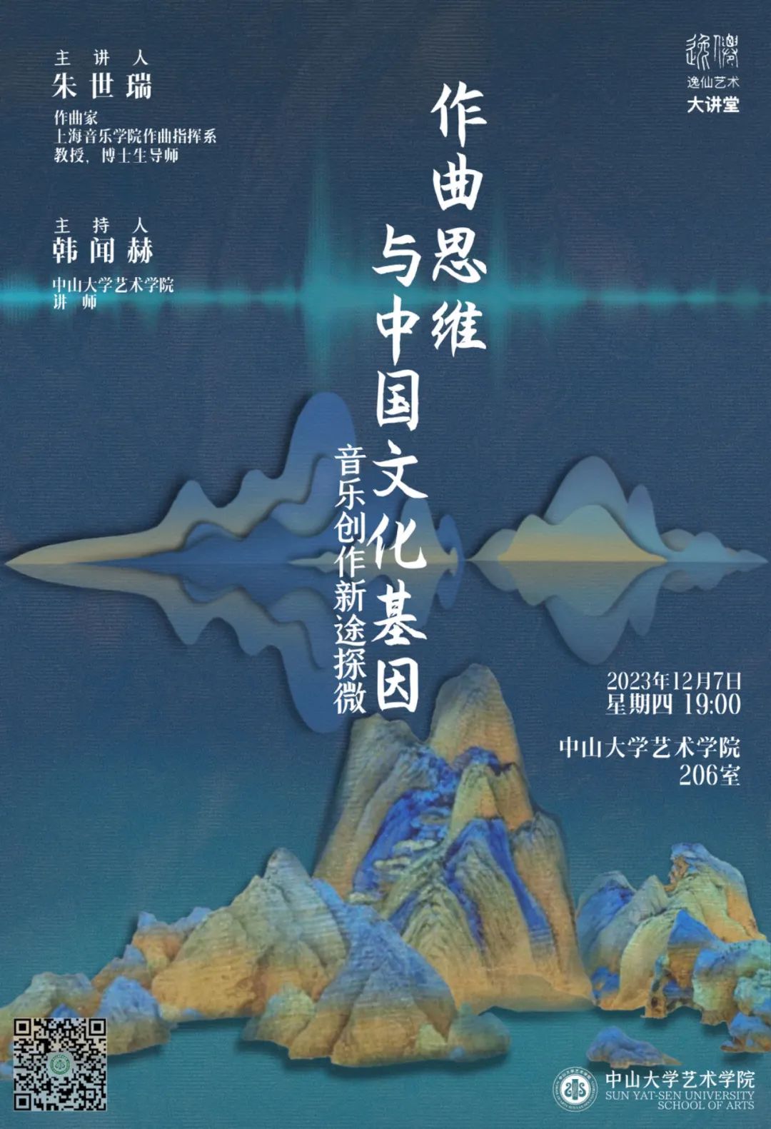 朱世瑞教授的讲座,聚焦其本人创作实践,结合作品实例,讲述其作曲思维根植于中国文化基因 –-- 汉字形声义象、诗乐意涵结构、中乐发声特质、上善若水随物赋形,等等;在作曲要素构建与技法表达方面,探索音乐创作新途;在产生具有艺术个性特征、和鸣中国精神魂魄、面向世界未来的音乐作品方面,提供一己之见。